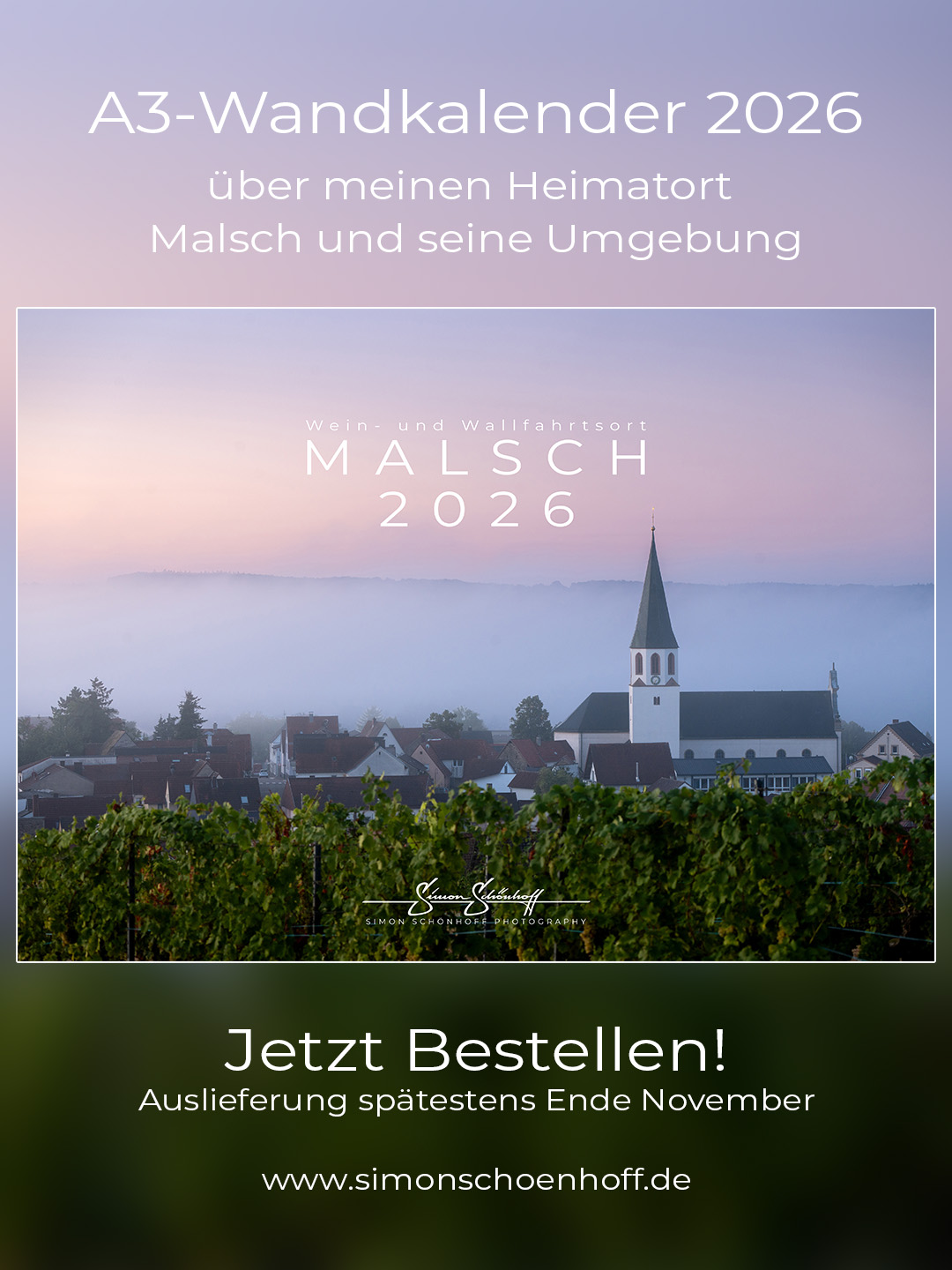 Auch für das Kalenderjahr 2026 habe ich wieder einige wunderschöne Aufnahmen in Malsch und seiner unmittelbaren Umgebung gesammelt und daraus einen kunstvollen Kalender gestaltet. Druckfrisch wird er Anfang Dezember erscheinen, aber am Besten jetzt gleich vorbestellen, denn die Anzahl ist limitiert!