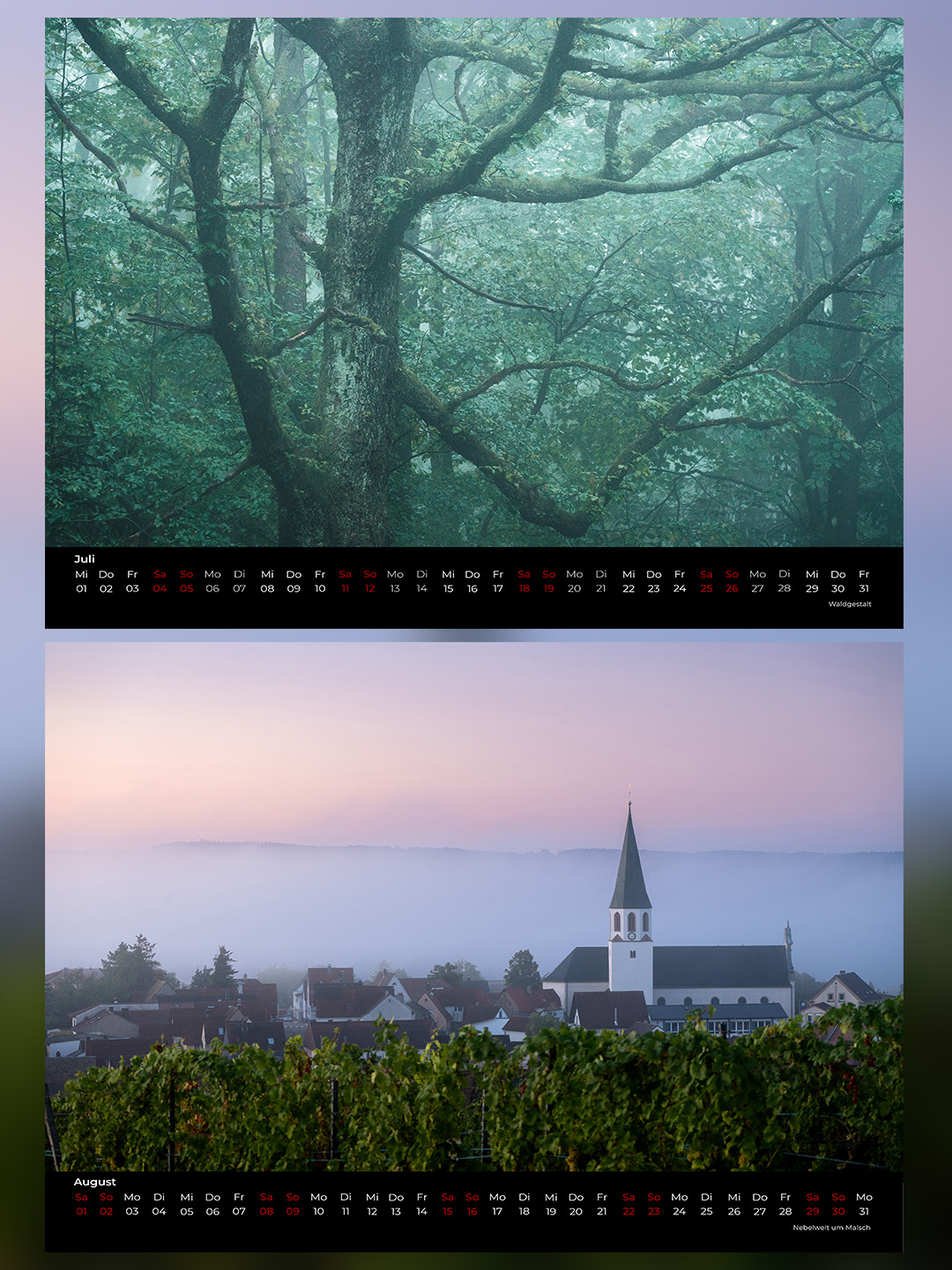 A3 Wandkalender für das Jahr 2026 mit 12 wunderschönen Motiven von Malsch und Umgebung.